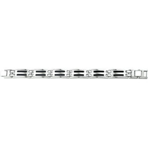 armband zwart leer 15 mm 21 cm zilver gerhodineerd