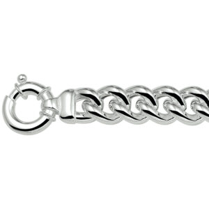 armband gourmette 14 mm 21 cm met groot veerslot zilver wit