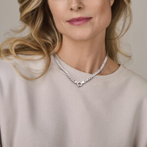 collier gourmette 7 mm 45 cm met groot veerslot zilver wit