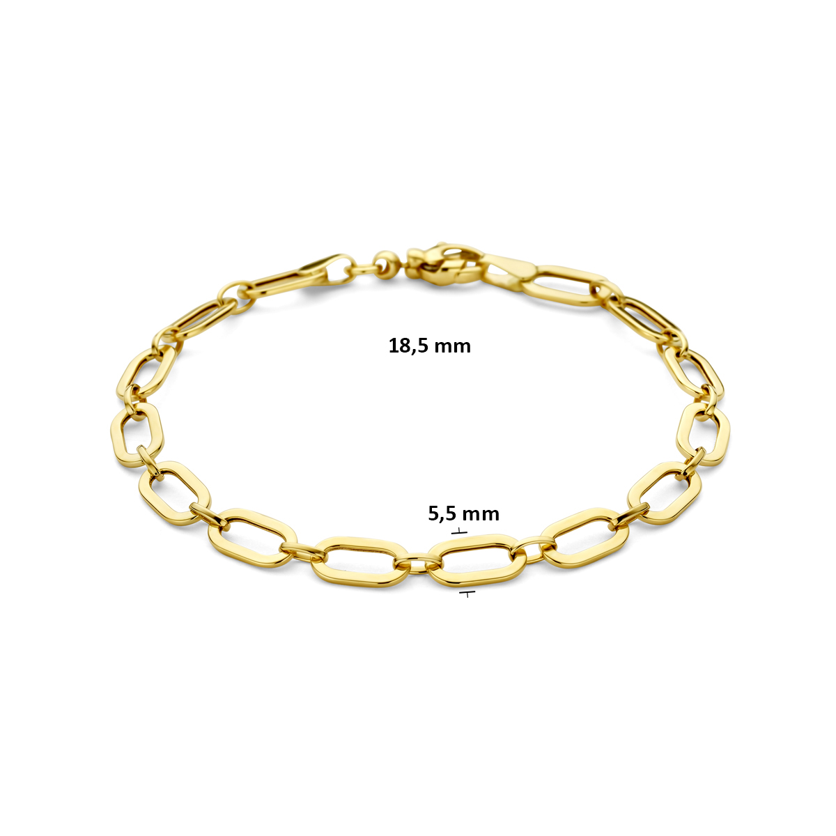 9k Geelkleurig armband met een schakelbreedte van 5.5mm. De armband heeft een draaglengte van 18.5cm en is uitgevoerd met een karabijnsluiting.
