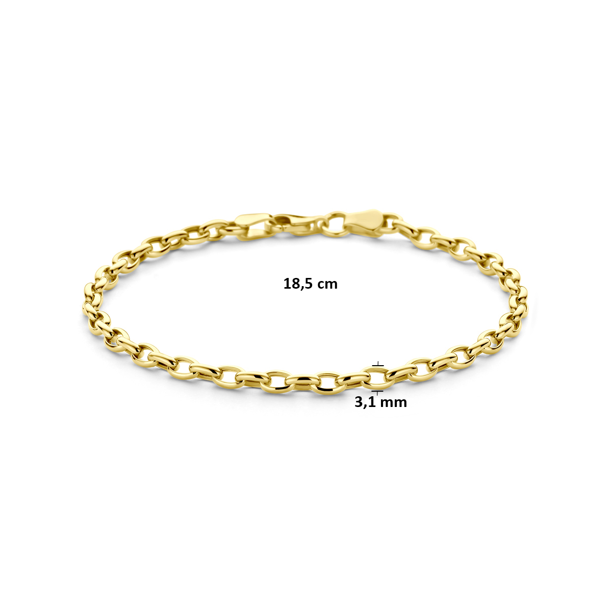 9k Geel kleurig armband anker met een draaglengte van 18,5 cm. De schakelbreedte is 3.1mm.