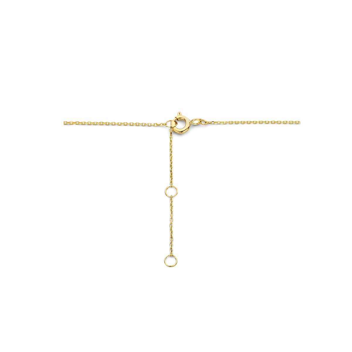 9k Geel kleurig collier uitgevoerd met een klaver. Het collier heeft draaglengtes van 40, 42 en 44cm. De schakelbreedte is 0.8mm.