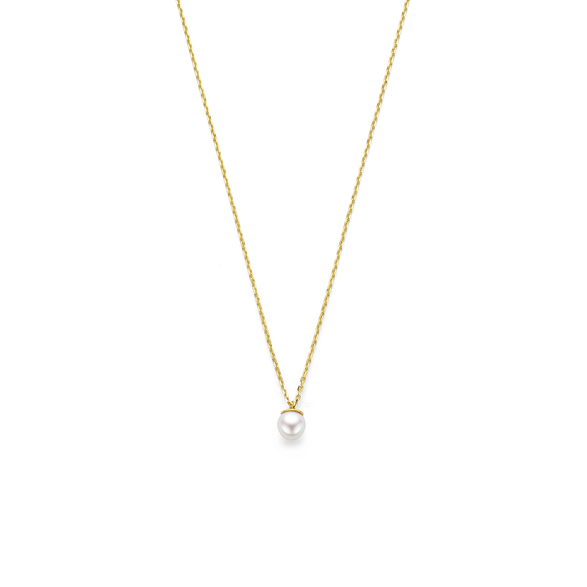 9k Geelkleurig collier uitgevoerd met een parel. Het collier heeft draaglengtes van 41-43-45cm en een schakelbreedte van 1mm.