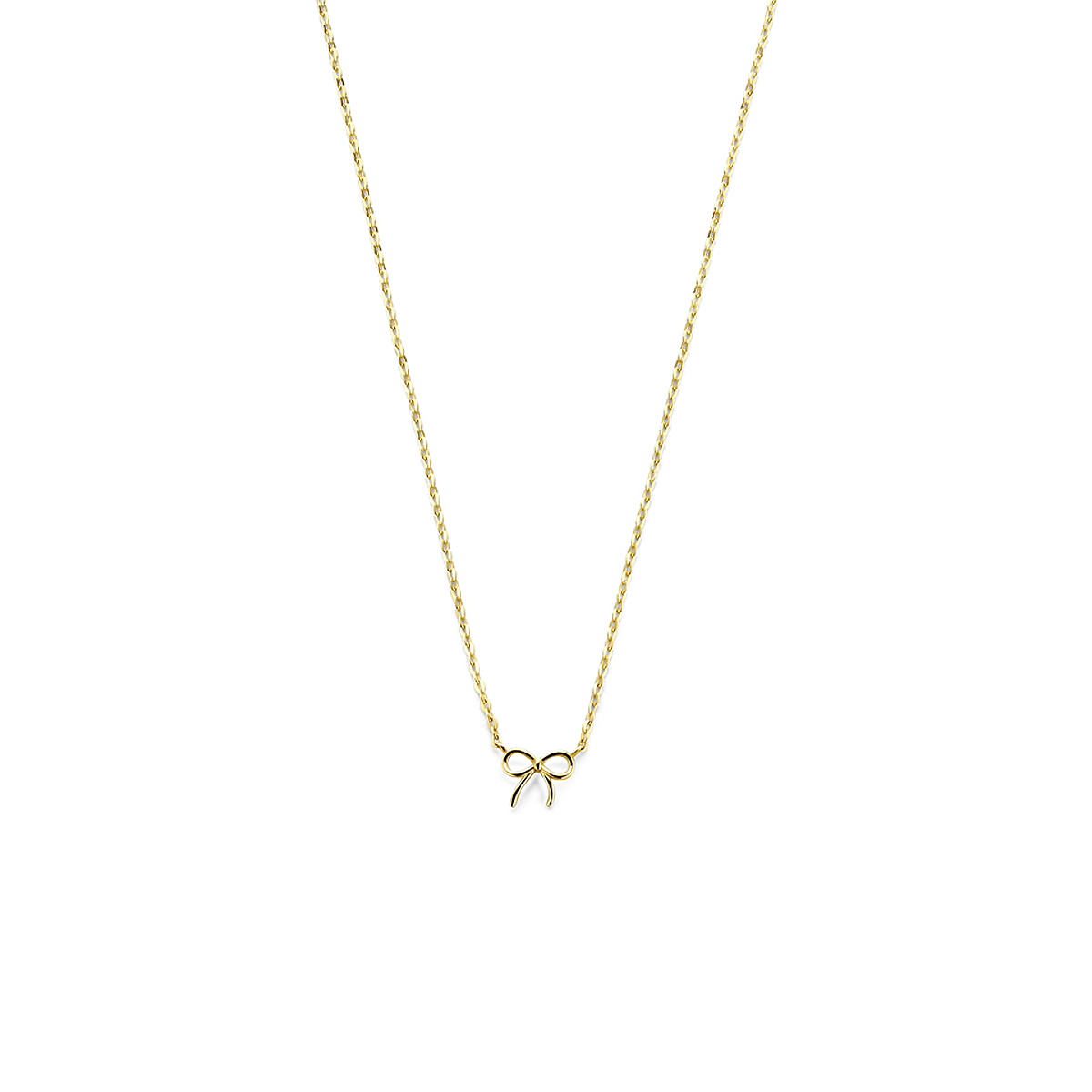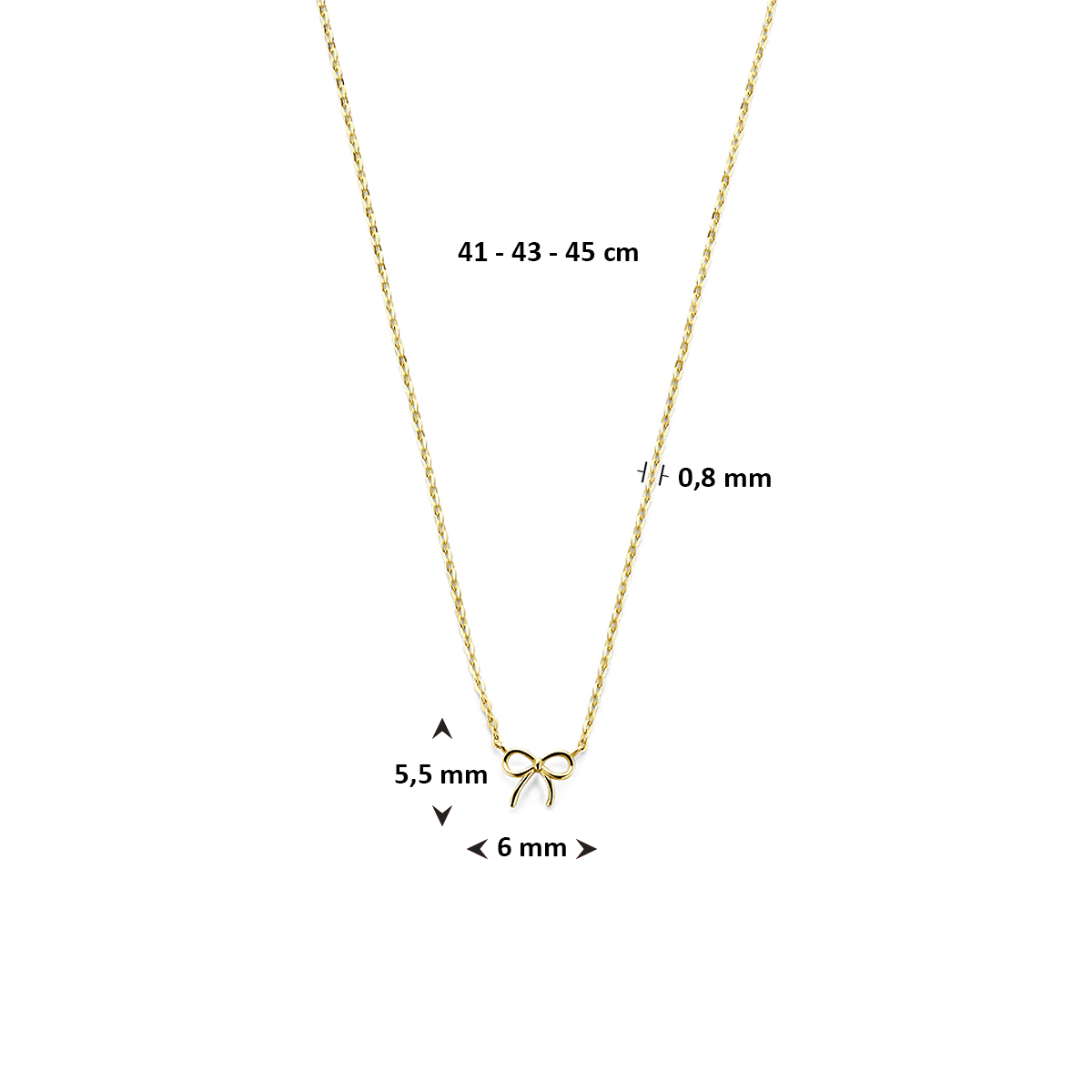 9k Geel kleurig collier uitgevoerd met een strik. Het collier heeft draaglengtes van 41-43-45cm.
