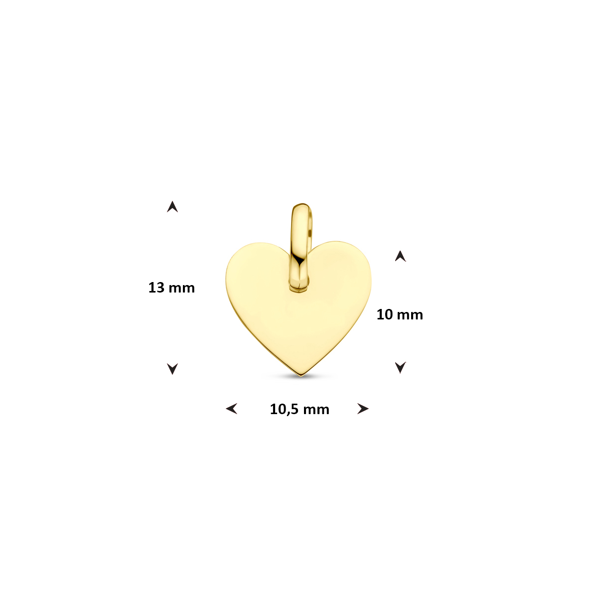 9k geel kleurig graveerhanger uitgevoerd met een hart. De hanger heeft een totale hoogte van 13mm.