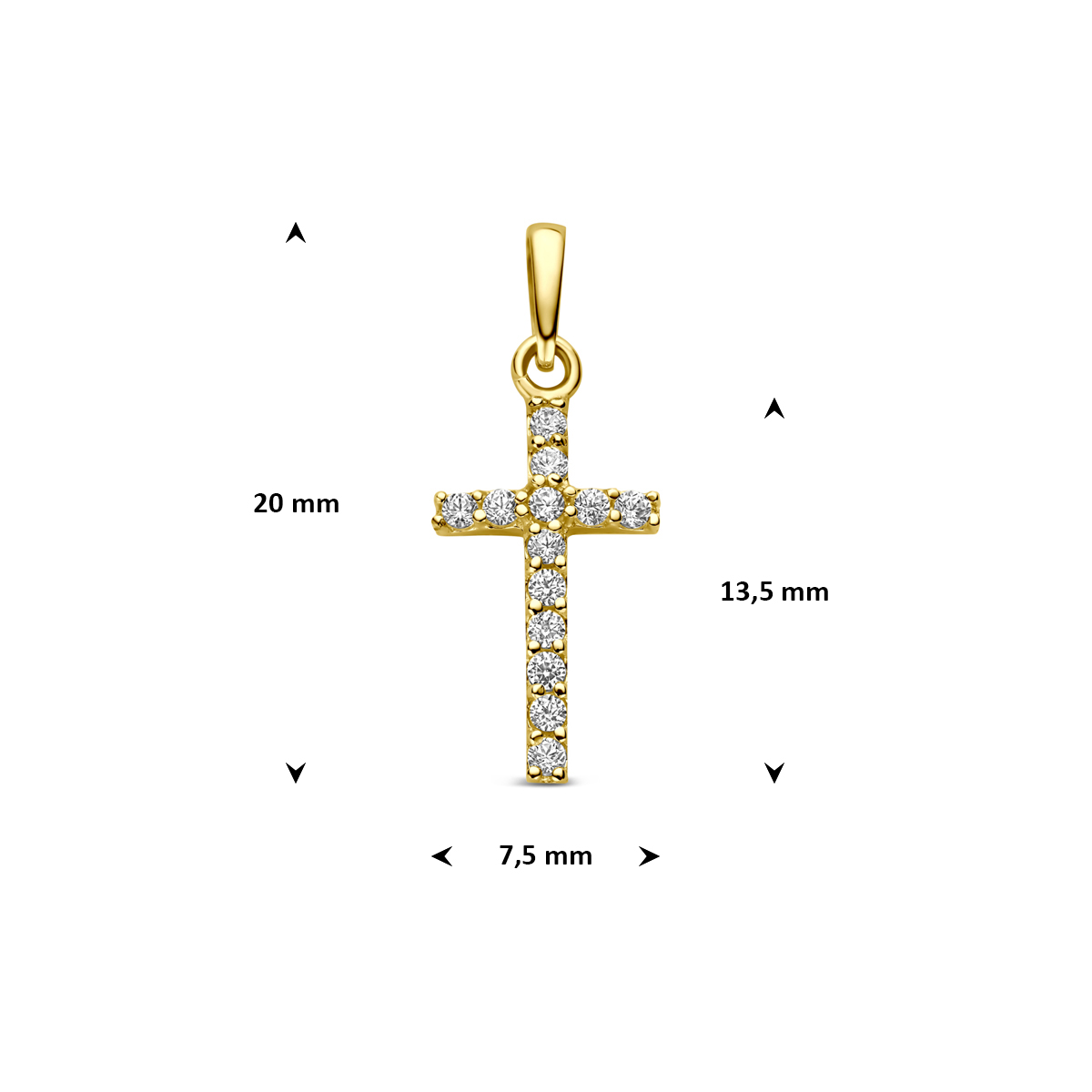 9k hanger kruis zirkonia 13,5 mm 9K geel