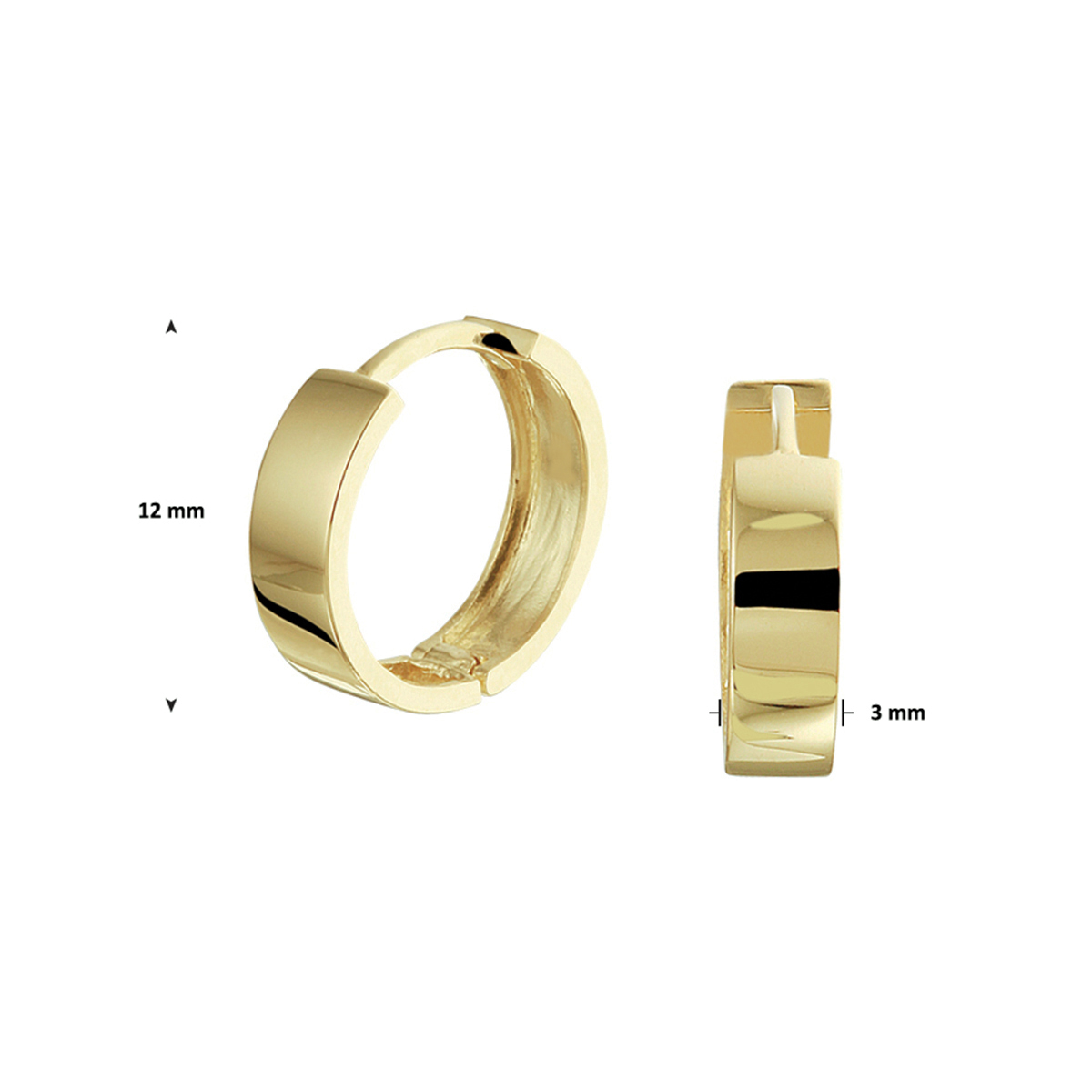9k Geelkleurig klapoorringen met een afmeting van 12x3mm.