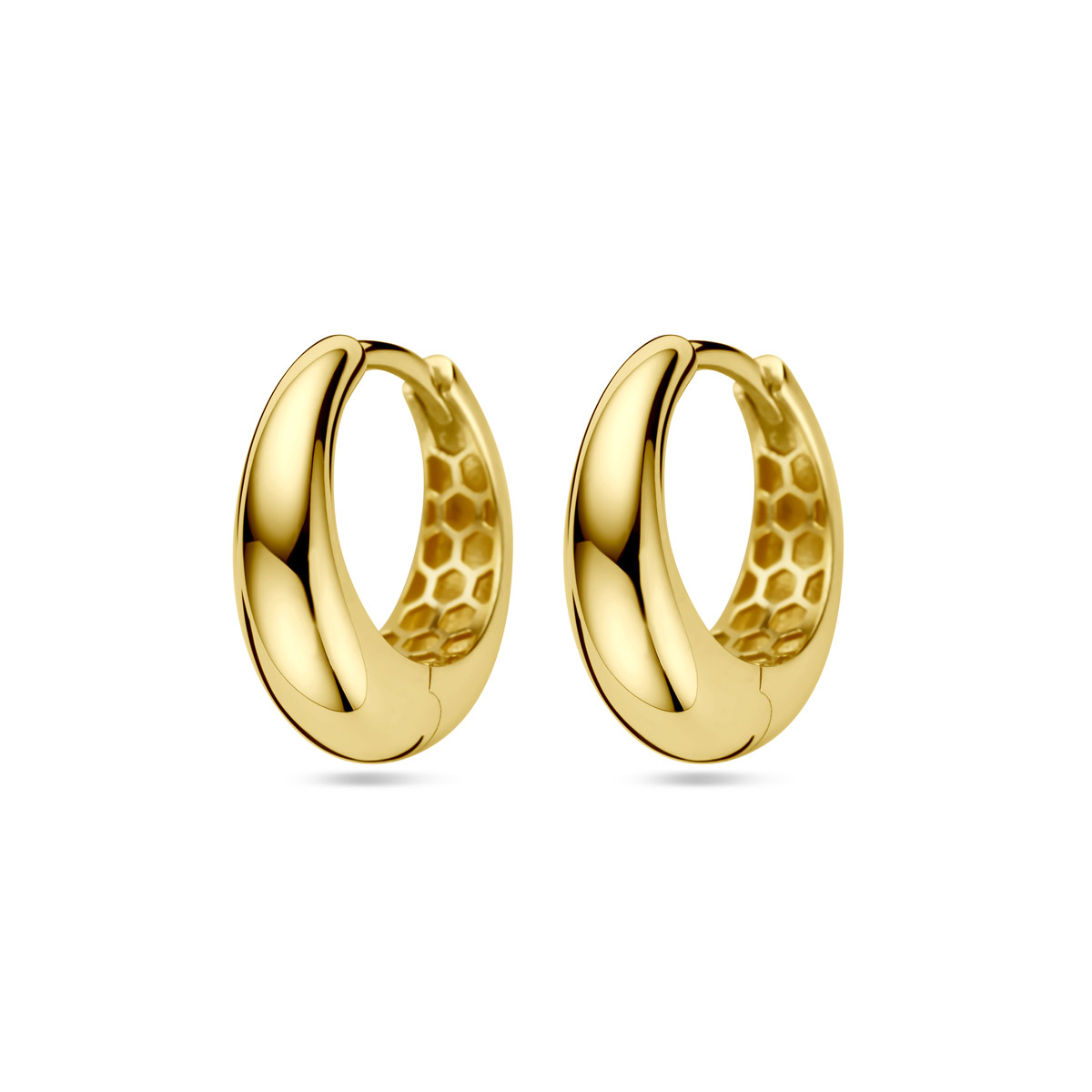 9k Geelkleurige klapoorringen. De oorringen hebben een diameter van 14mm.