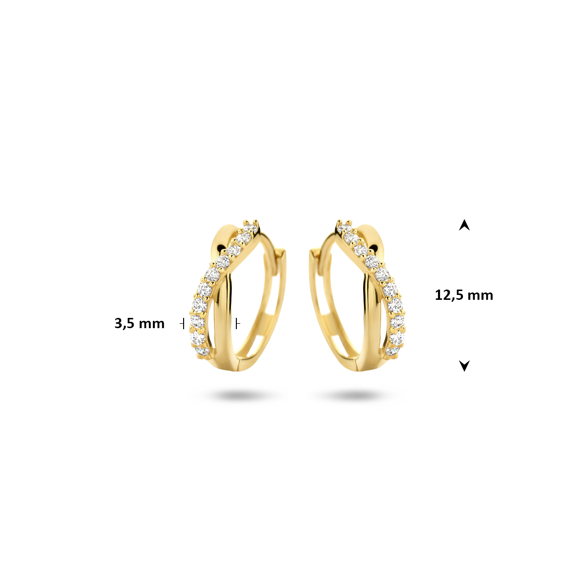 9k Geel kleurige klapoorringen uitgevoerd met zirkonia. De oorringen hebben een diameter van 12,5mm.