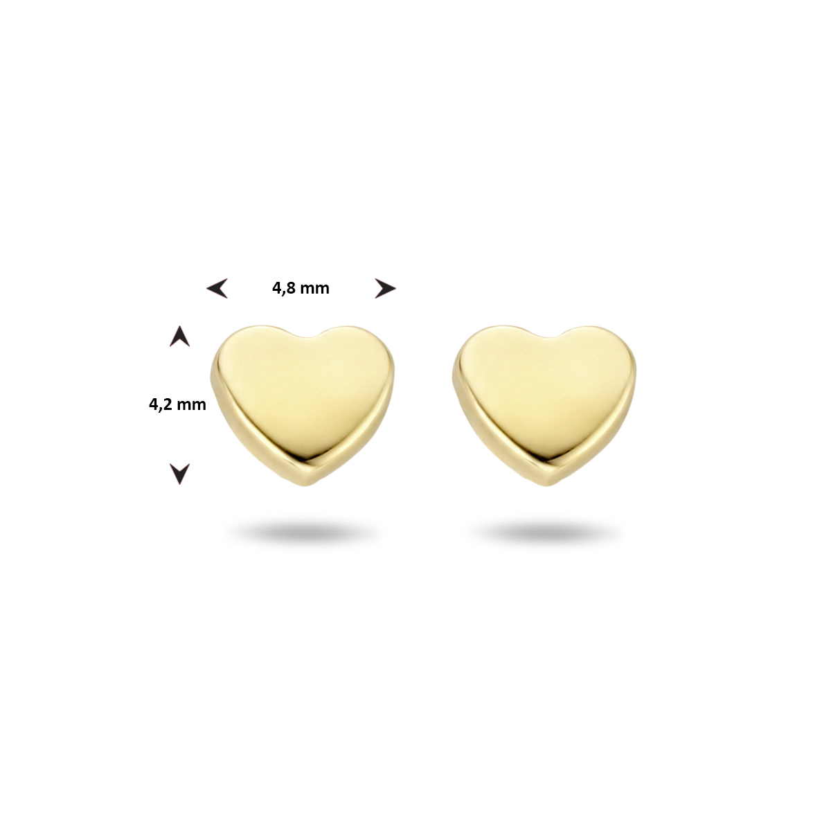 9k Geel kleurig oorknoppen met een ongebodemd hart. De oorknoppen hebben een afmeting van 4x5mm.