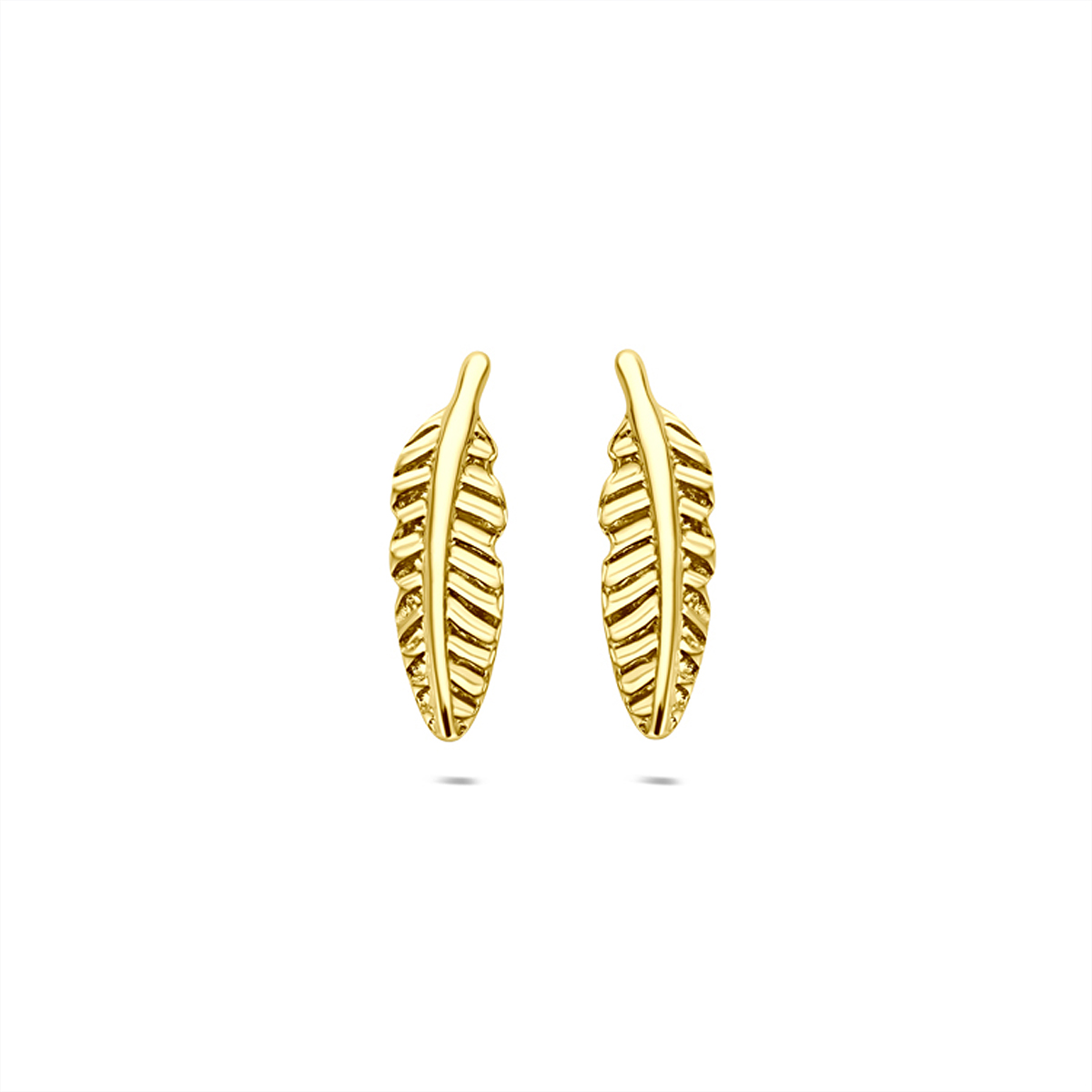 9k Geelkleurig oorknoppen uitgevoerd in de vorm van een veer. De oorknoppen hebben een afmeting van 11.3mm.