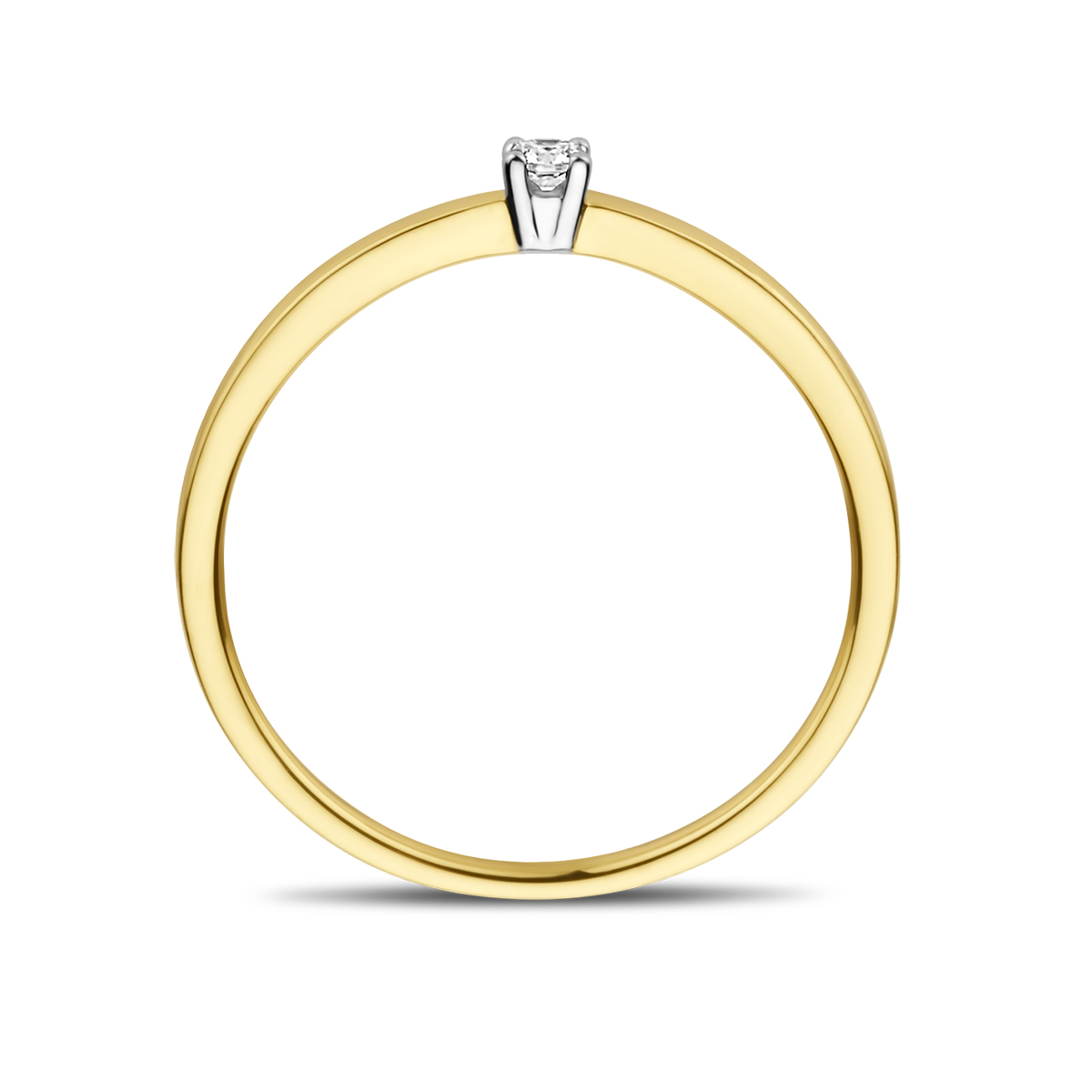 14k Bicolor geel- en witgouden ring uitgevoerd met schitterend diamant. De ring heeft een breedte van 2.5mm. De totale diamantgewicht is 0.05ct.