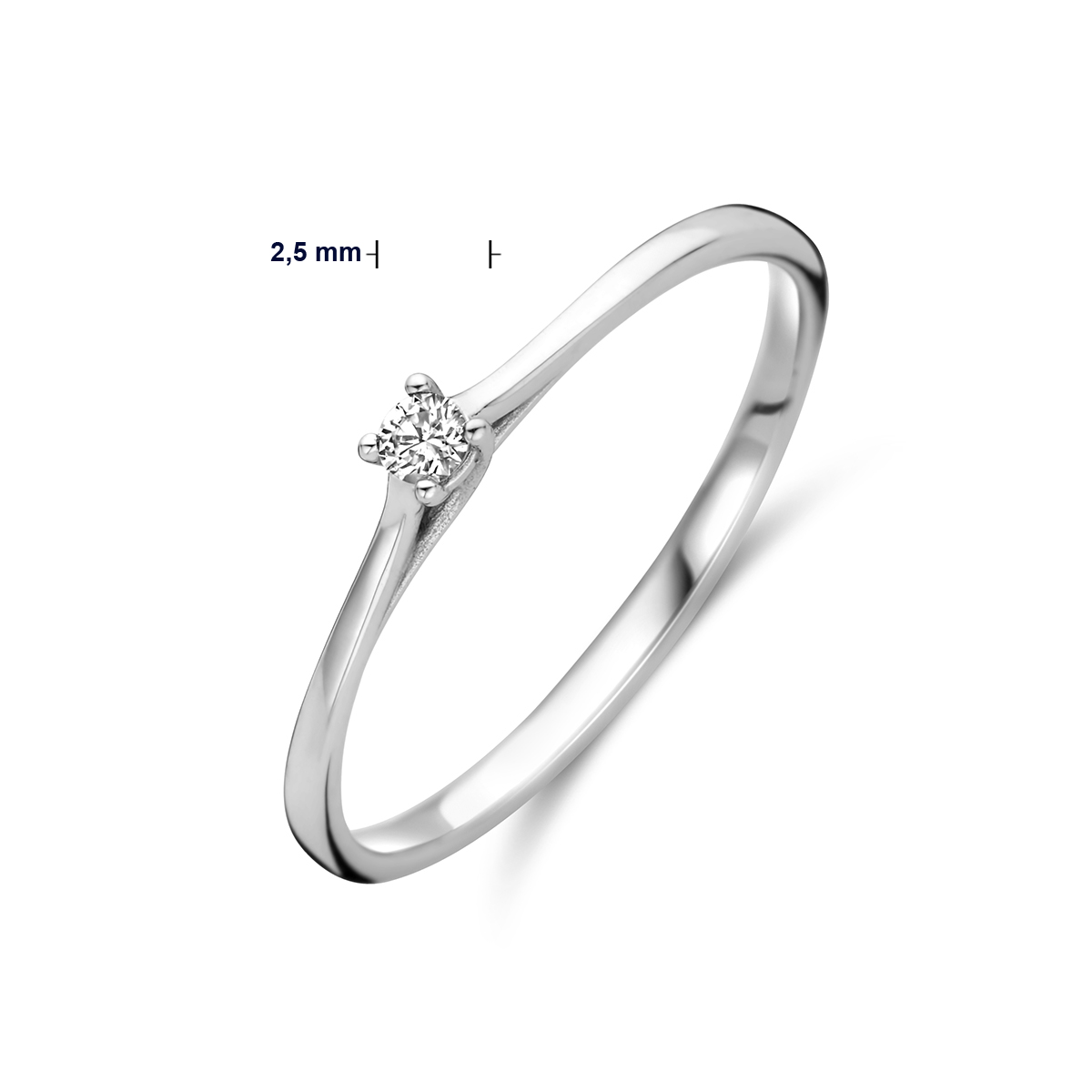 14k Witgouden ring uitgevoerd met een diamant. De ring heeft een breedte van 2.5mm.