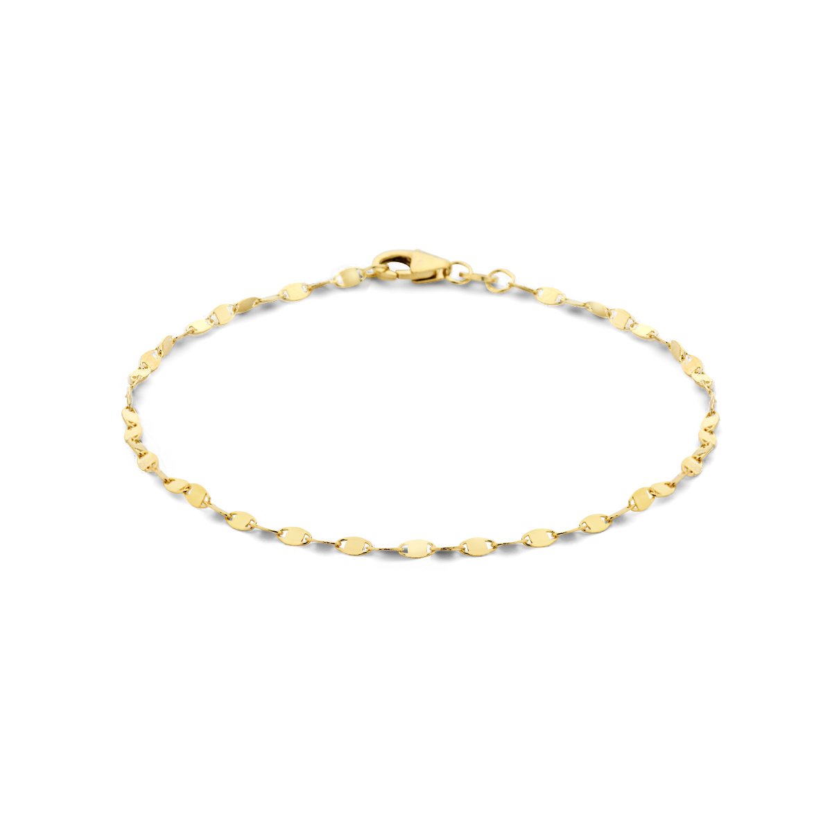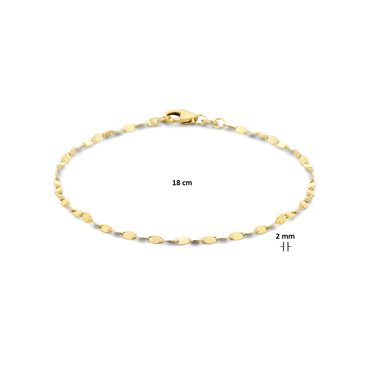 Geelgouden armband met een draaglengte van 18cm en een schakelbreedte van 2mm. De armband is uitgevoerd met een stevige karabijn sluiting. Minimalistisch design voor een exclusieve uitstraling.
