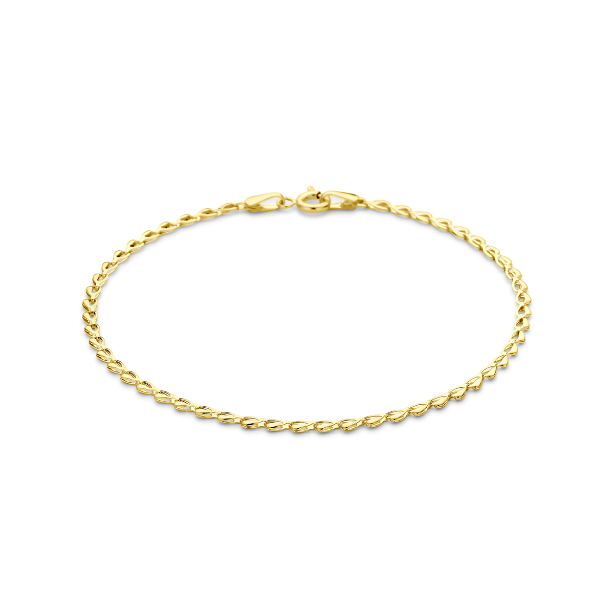 14k Geelgouden armband met een schakelbreedte van 2.1mm. De armband heeft een draaglengte van 18.5cm.