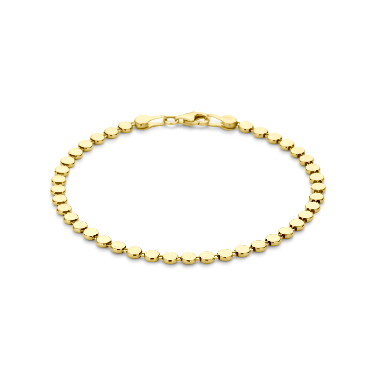 14k Geelgouden armband met een schakelbreedte van 3.6mm. De armband heeft een draaglengte van 18.5cm en is uitgevoerd met karabijnsluiting.