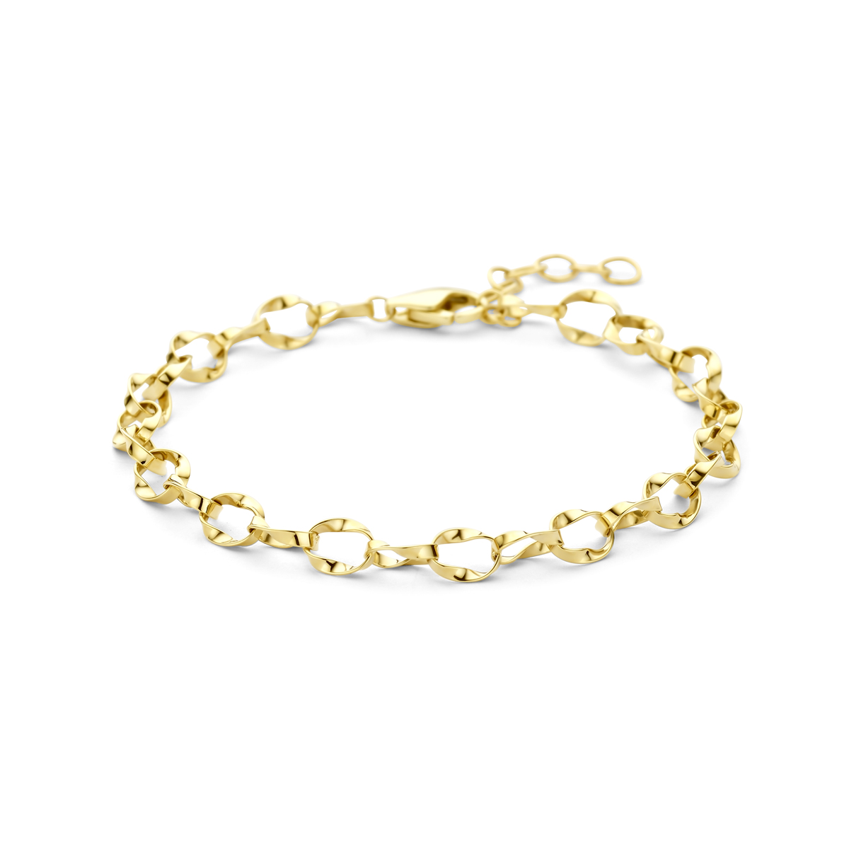 14k Geelgouden armband met een schakelbreedte van 5mm. De armband heeft een draaglengte van 16cm met 3cm extensie. Uitgevoerd met een karabijnsluiting.