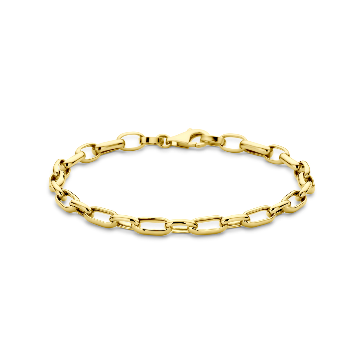 14k Geelgouden armband met een schakelbreedte van 4.8mm. De armband heeft een draaglengte van 19cm en is uitgevoerd met karabijnsluiting.