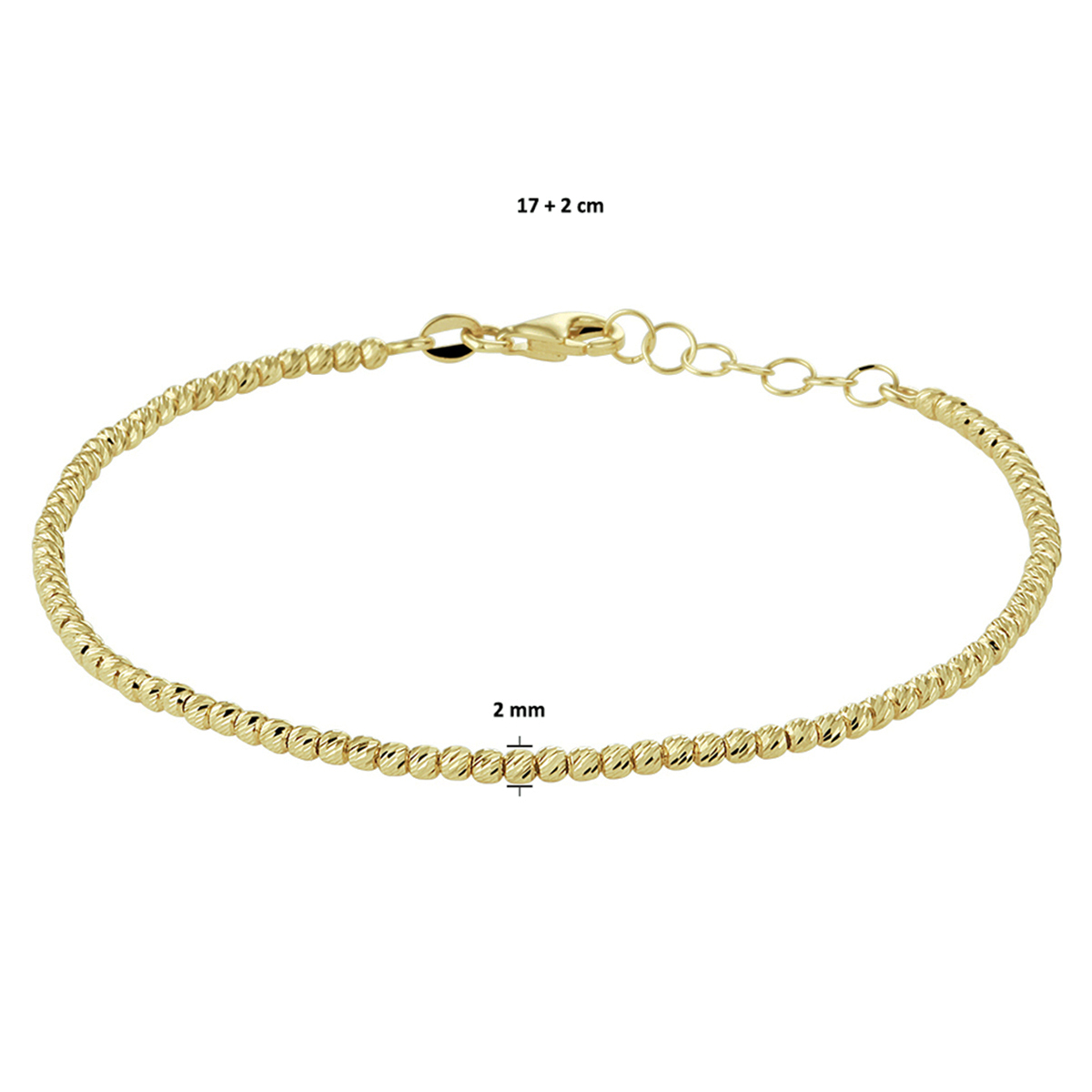 armband bolletjes gediamanteerd 2,0 mm 17 + 2 cm 14K geelgoud