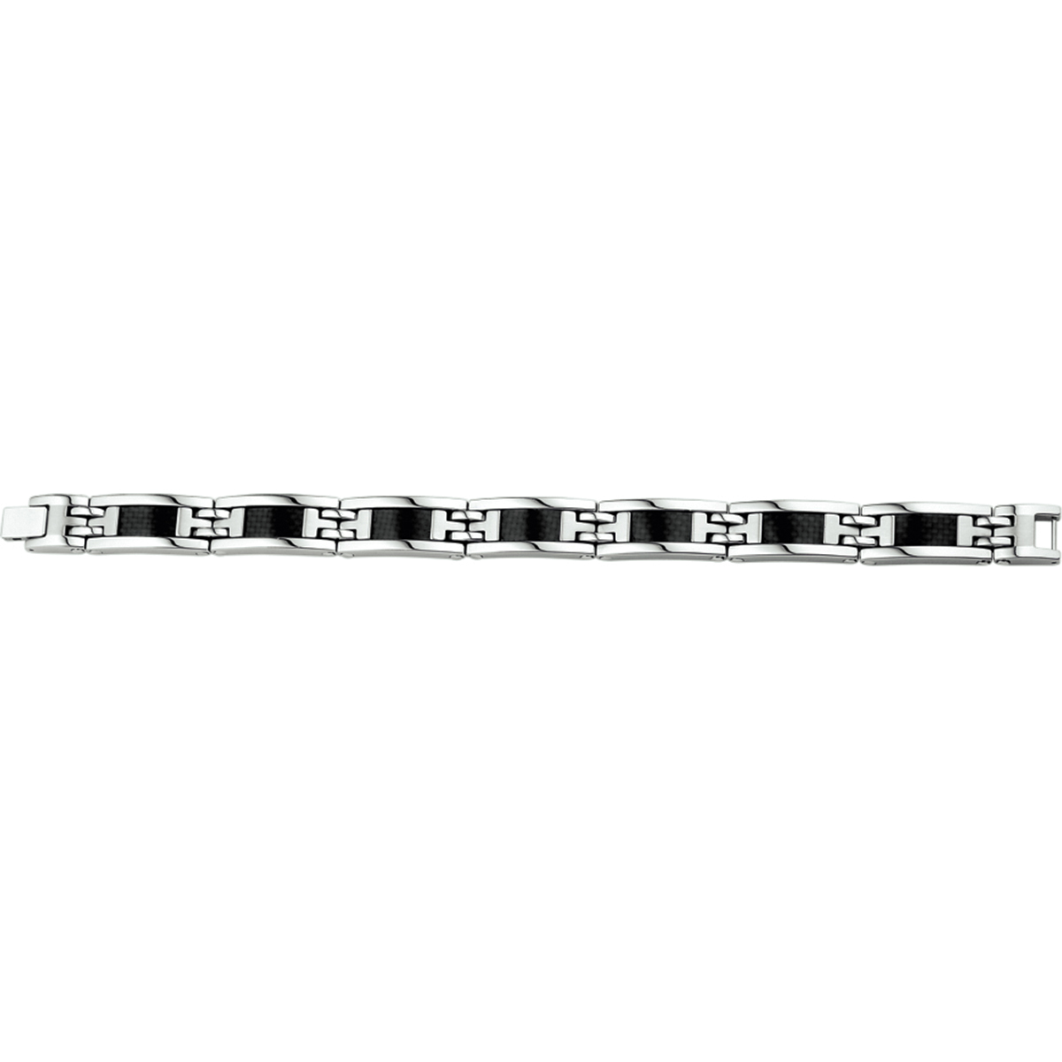 Stalen armband met carbon. De schakelbreedte is 11.5mm.