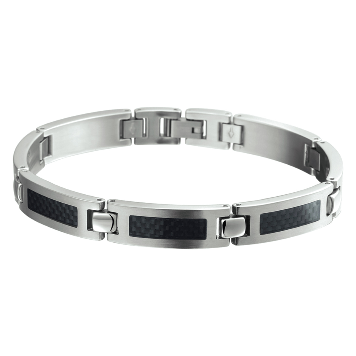 Stalen armband met carbon. De schakelbreedte is 9.0mm.