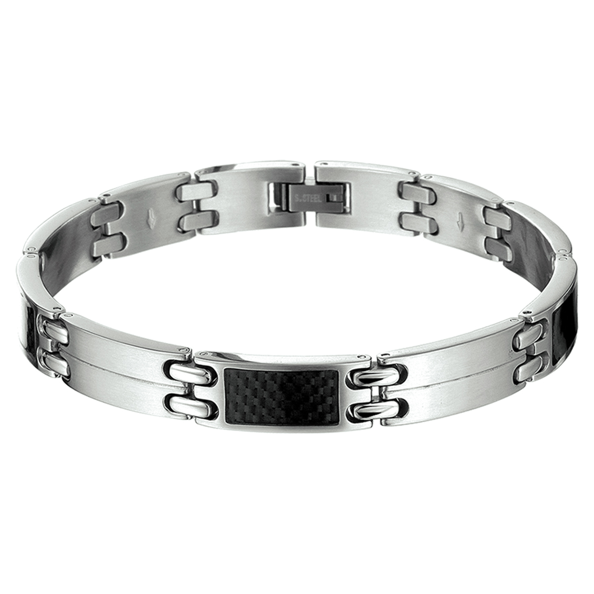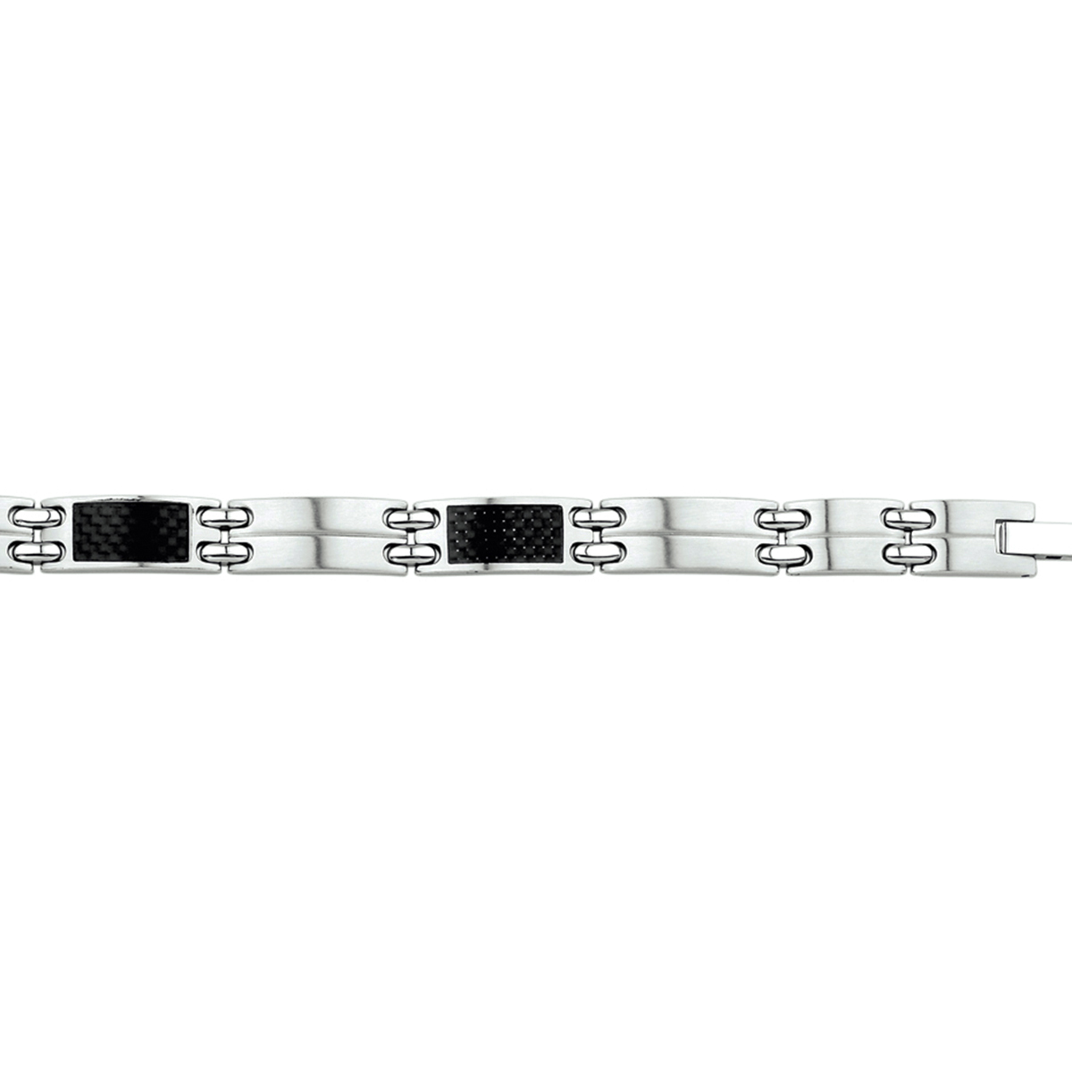 Stalen armband met carbon. De schakelbreedte is 9.0mm.