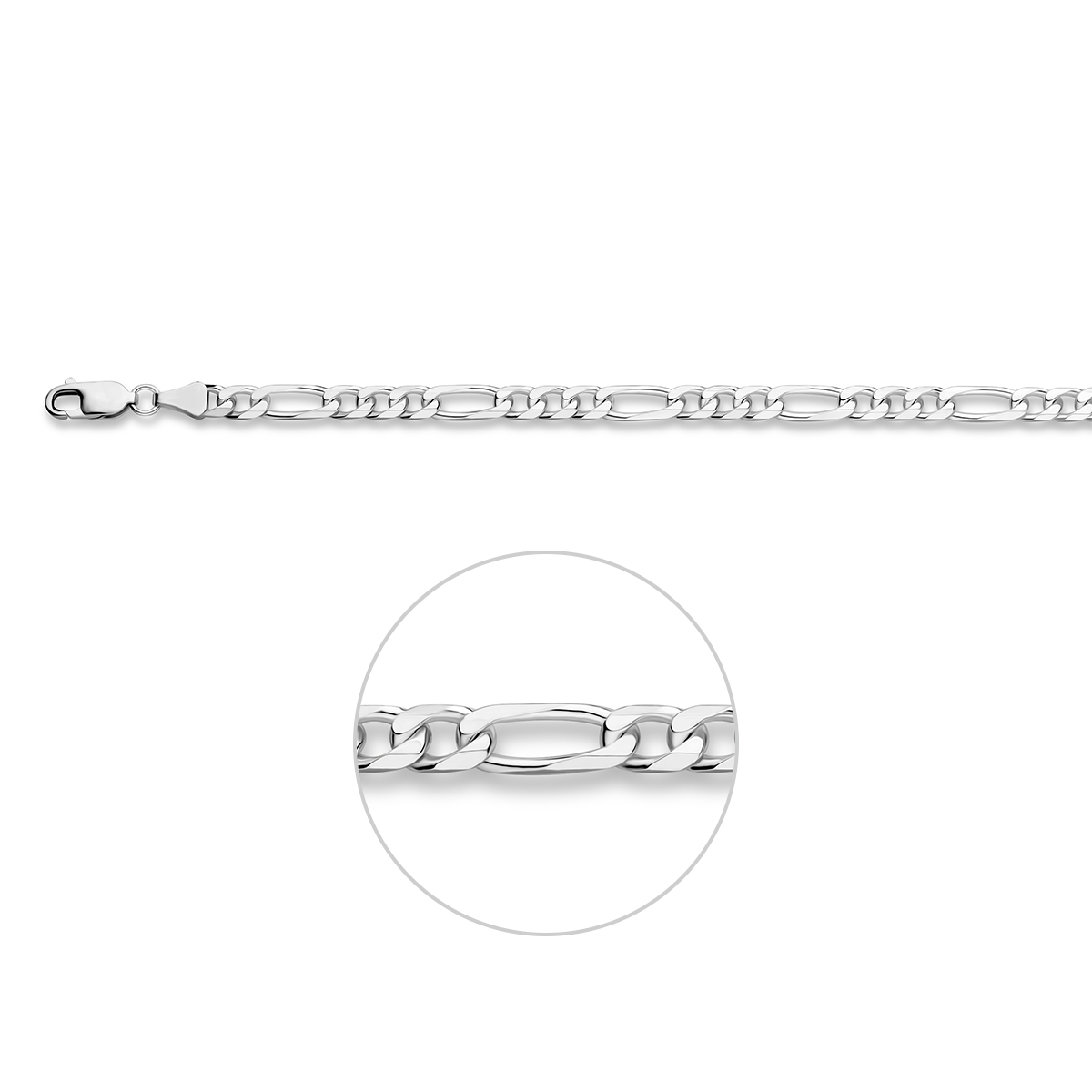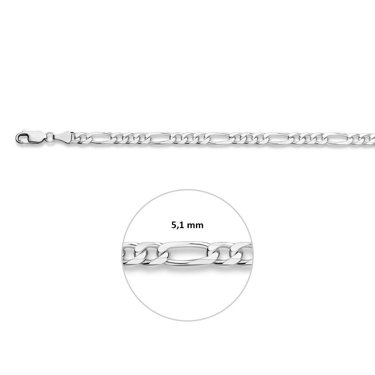 armband figaro 5,1 mm 20 cm zilver gerhodineerd