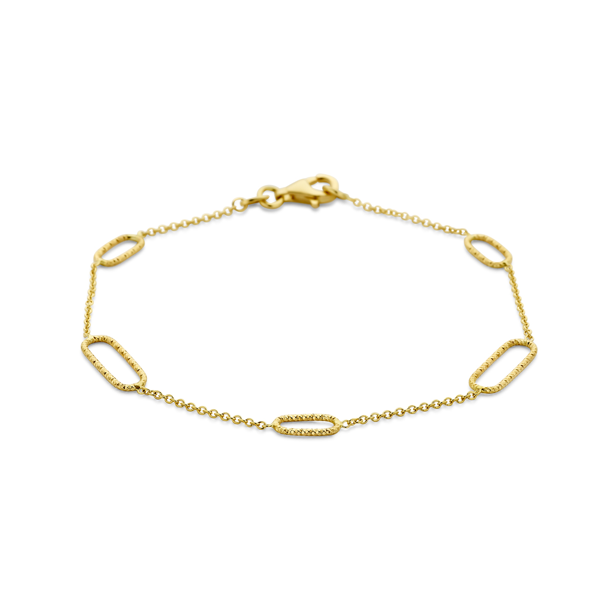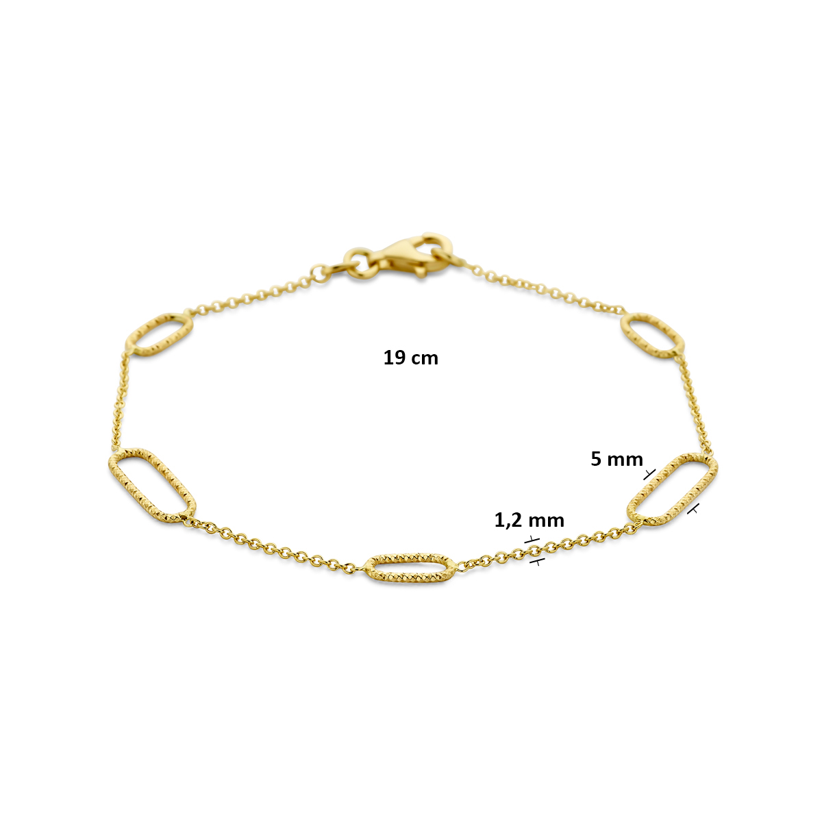 14k Geelgouden armband met een schakelbreedte van 1,2 mm een een draaglengte van 19cm. Uitgevoerd met een karabijnsluiting.