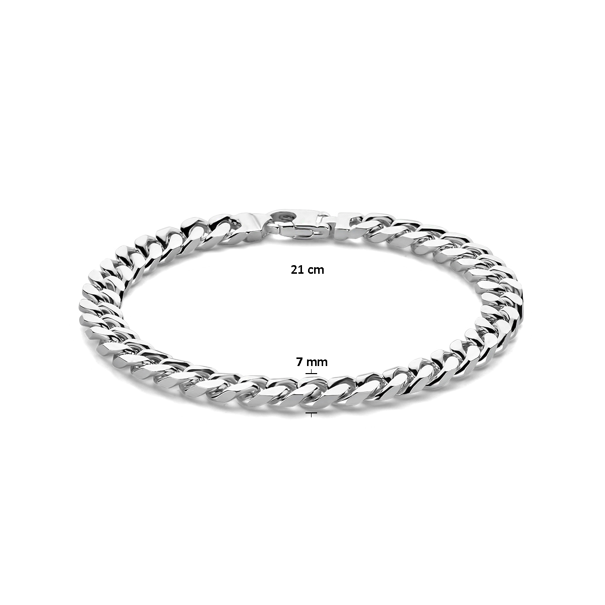 925 Zilveren gourmette armband met een schakelbreedte van 7mm. De armband heeft een draaglengte van 21cm. Uitgevoerd met een karabijn sluiting.