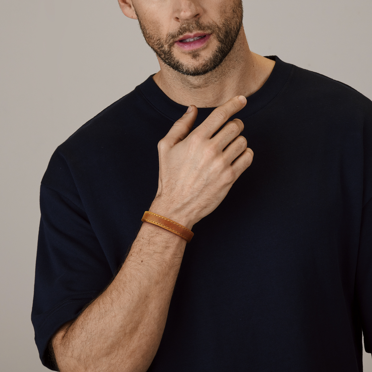 Bruin leren armband uitgevoerd met een stalen magneetsluiting. De armband heeft een breedte van 12.5mm.
