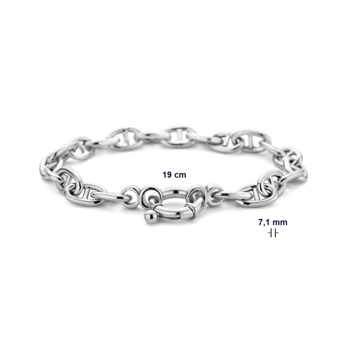 Gerhodineerd 925 zilveren armband uitgevoerd met een groot veerslot. De armband heeft een draaglengte van 19cm en een schakelbreedte van 7.1mm.