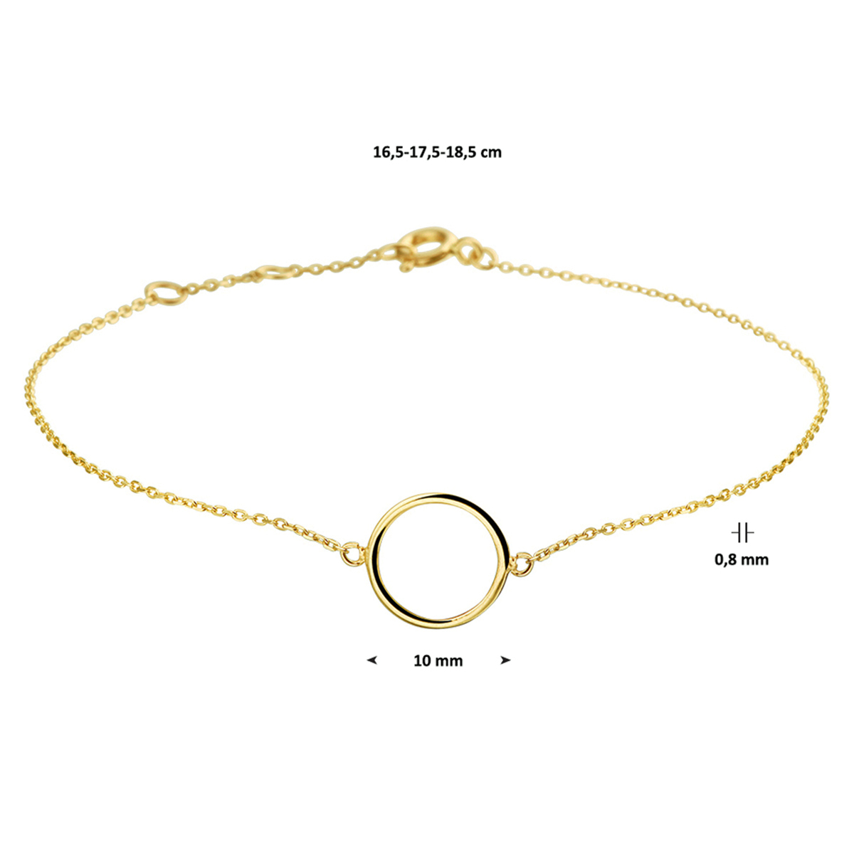 Trendy 14k geelgouden anker armband uitgevoerd met een rondje van 10mm en draaglengtes van 16.5 17.5 en 18.5 cm en een schakelbreedte van 0.8mm. Ben je helemaal van het hier en nu mode bewust en houd van trendy sieraden dan mag deze armband niet missen in jou sieraden stash!. Tip: Combineer deze armband met bijpassende sieraden die te vinden zijn in onze collectie!. De schakelbreedte is 0.8mm.