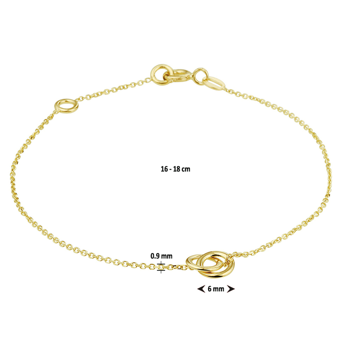 Moderne 14k geelgouden 0.9mm anker armband met poli afgewerkte open rondjes van 6mm uitgevoerd met een veerring. De armband heeft draaglengtes van 16 en 18cm. Tip: Door het design is deze armband perfect te combineren met andere sieraden uit onze collectie of je eigen stash! Zo creeer je elke keer weer een nieuwe look!