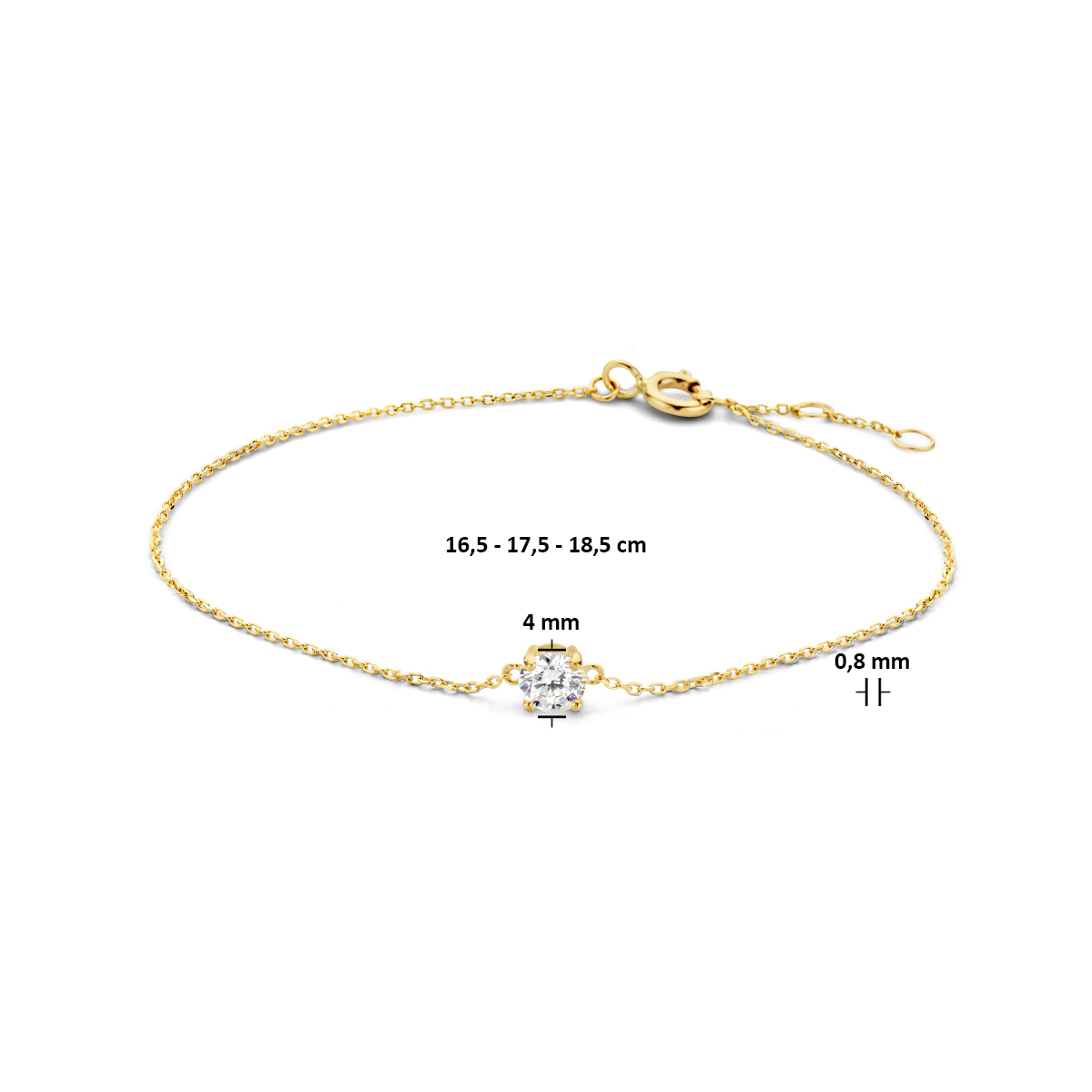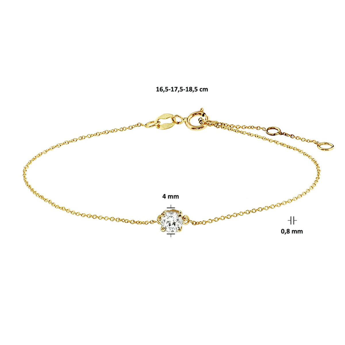14k Geelgouden anker armband uitgevoerd met een schitterende zirkonia. Deze armband met draaglengtes van 16.5, 17.5 en 18.5cm past bij iedere outfit en is met veel andere sieraden te combineren. De steen heeft een diameter van 4mm.