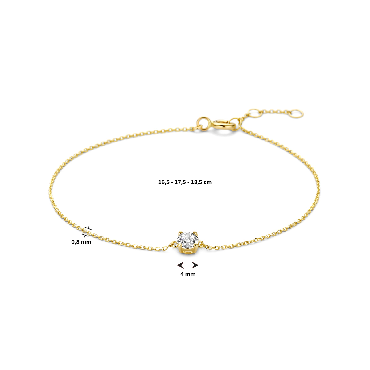 14k Geelgouden anker armband uitgevoerd met een schitterende zirkonia. Deze armband met draaglengtes van 16.5, 17.5 en 18.5cm past bij iedere outfit en is met veel andere sieraden te combineren. De steen heeft een diameter van 4mm. De schakelbreedte is 0.8mm.