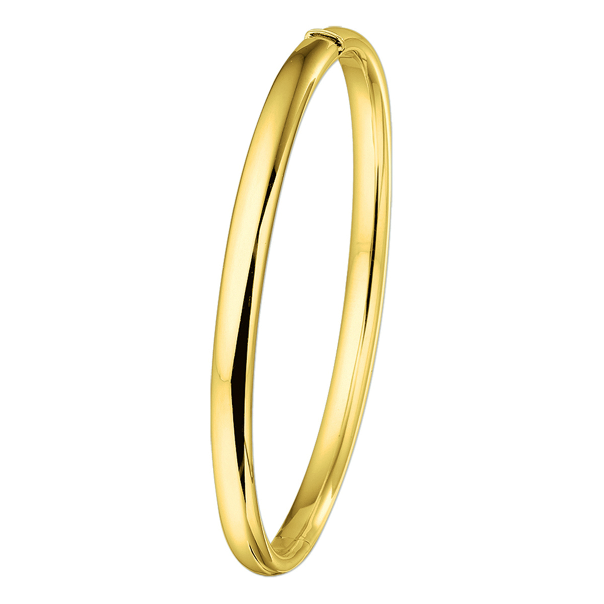 Geelgouden bangle met een ovale buis en een scharnier-sluiting.