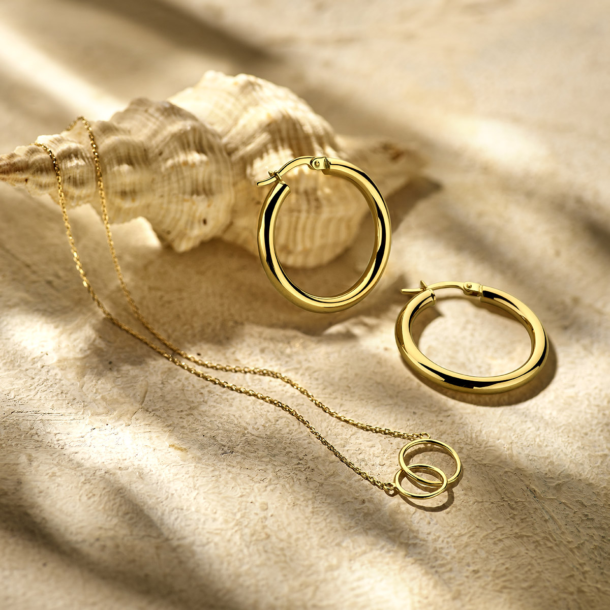 14k Geelgouden collier uitgevoerd met 2 ringen. Het collier heeft draaglengtes van 40-42-44cm.
