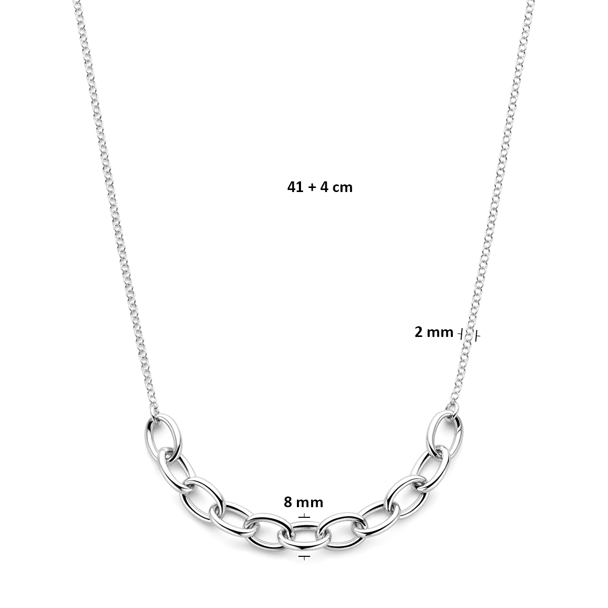 Gerhodineerd 925 zilveren collier met een lengte van 41 cm en een extensie van 4 cm. Het collier heeft een schakelbreedte van 2mm en een breedte van 8mm.
