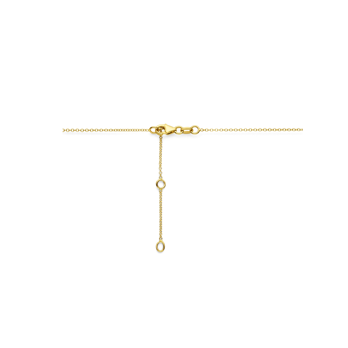 14k Geelgouden collier uitgevoerd met een hanger met een afmeting van 22×9,5. Het collier heeft draaglengtes van 41-43-45cm en een schakelbreedte van 1,1mm en is uitgevoerd met een karabijnsluiting.
