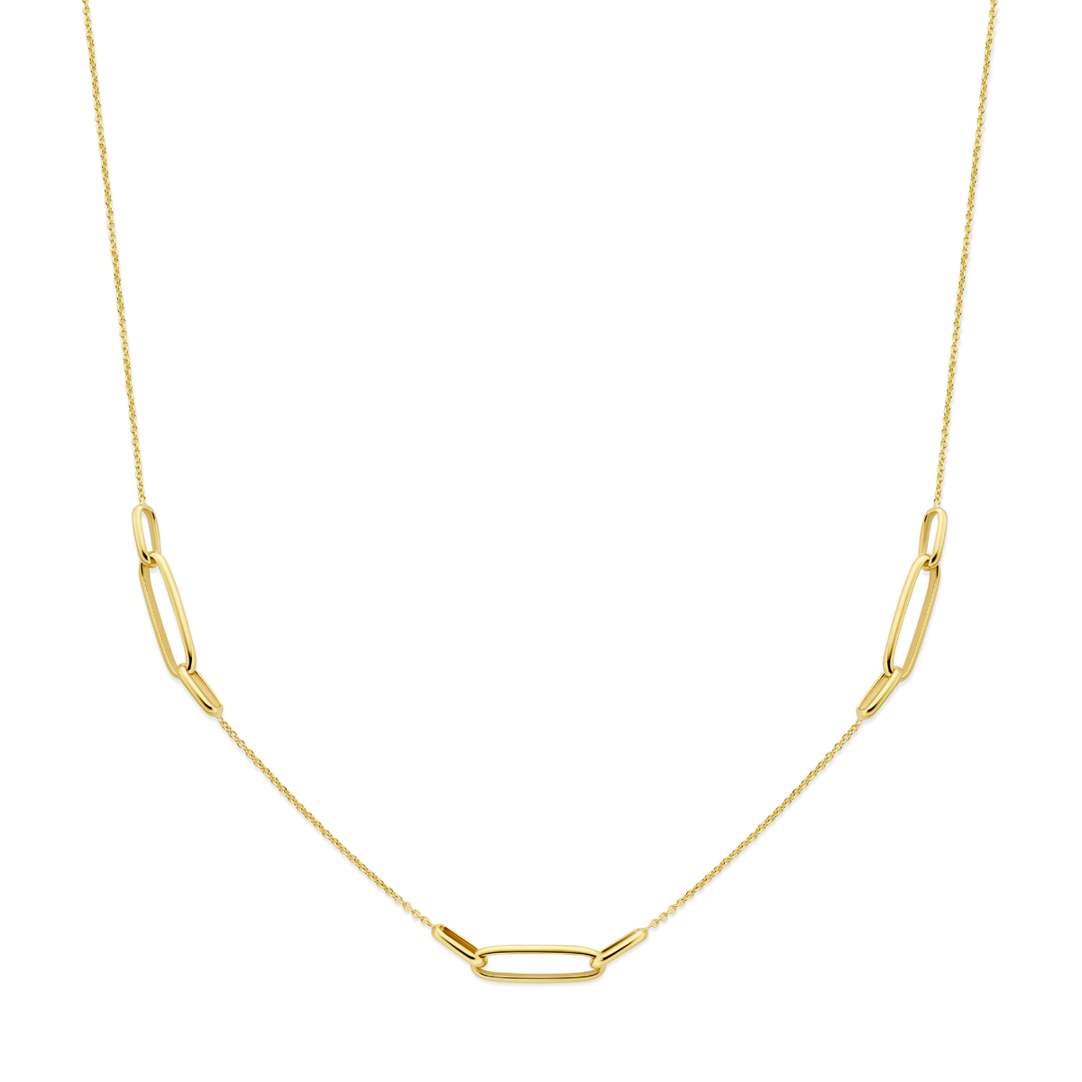 14k Geelgouden collier met een schakelbreedte van 1,2mm en een draaglengte van 45cm. Uitgevoerd met karabijnsluiting.