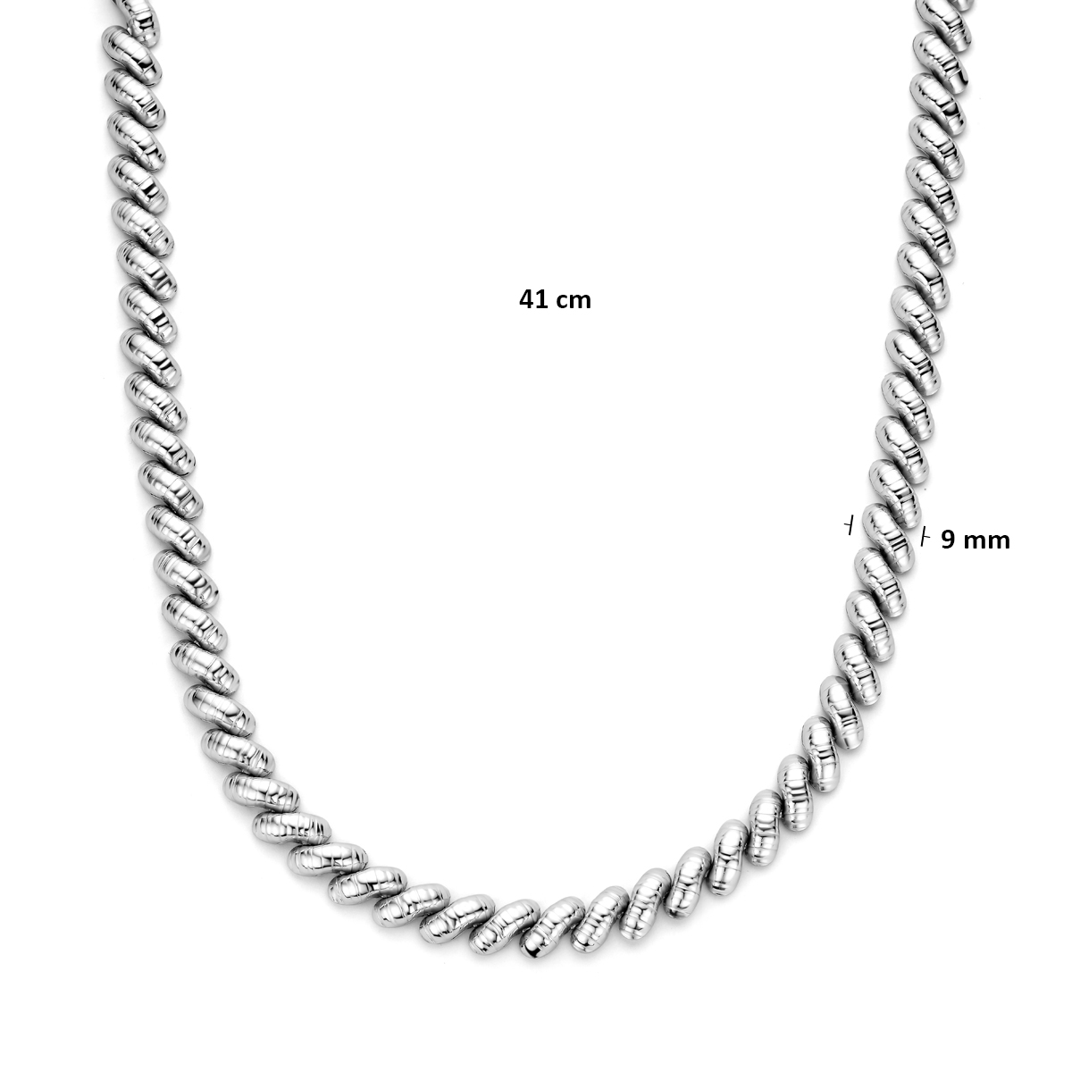Gerhodineerd 925 zilveren collier met een schakelbreedte van 9mm. Het collier heeft een draaglengte van 41cm. Uitgevoerd met karabijnsluiting.
