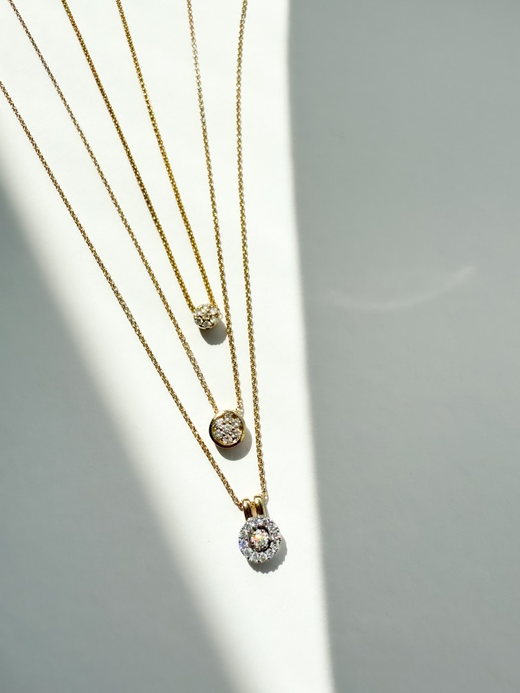 Diamanten entourage hanger aan een gouden ankerschakel.