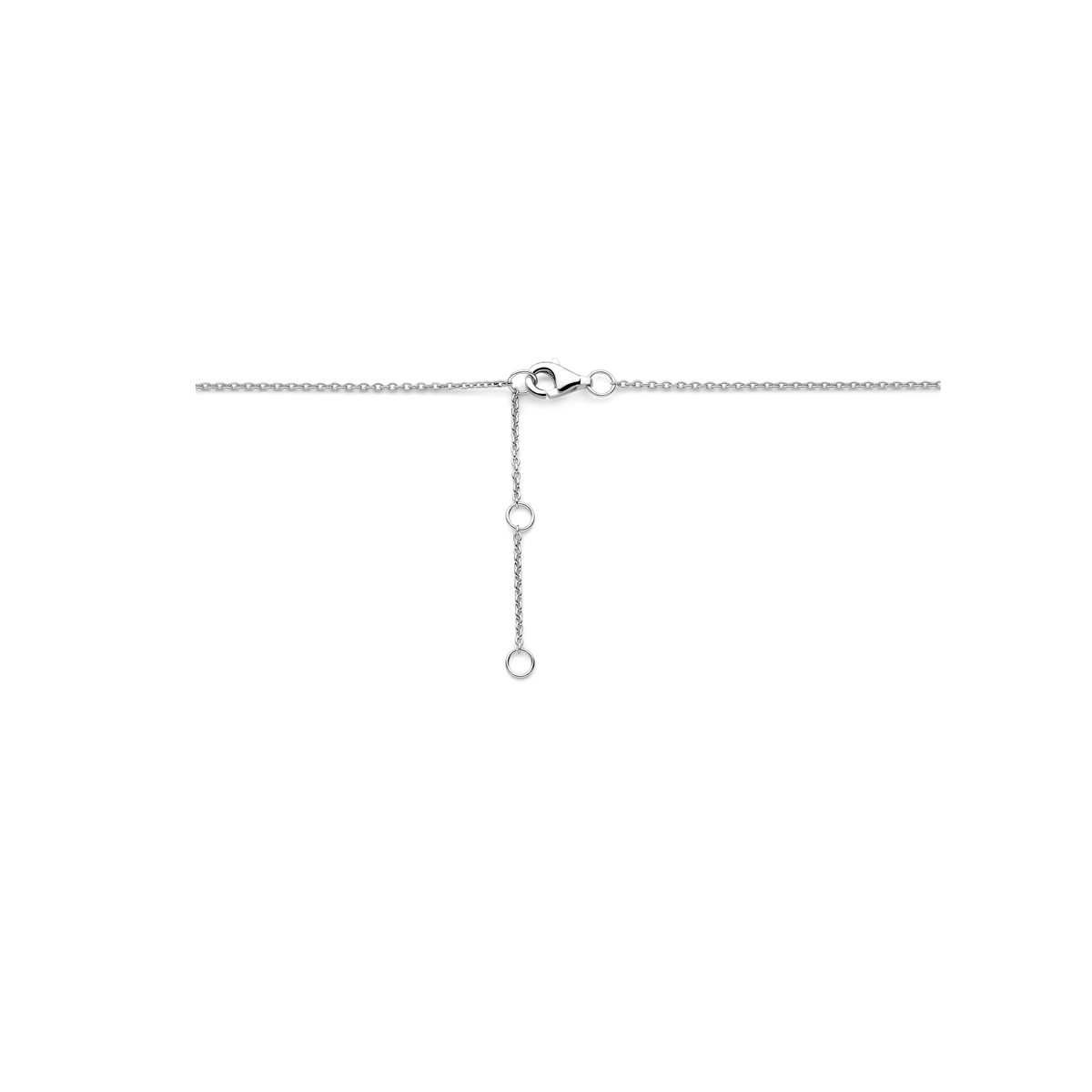 Gerhodineerd 925 zilveren collier uitgevoerd in de vorm van een druppel met zirkonia. Het collier heeft de draaglengtes van 41-43-45cm.