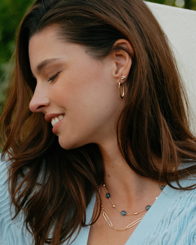 Speels geelgouden schakelcollier, met ovale schakels van verschillende groottes.