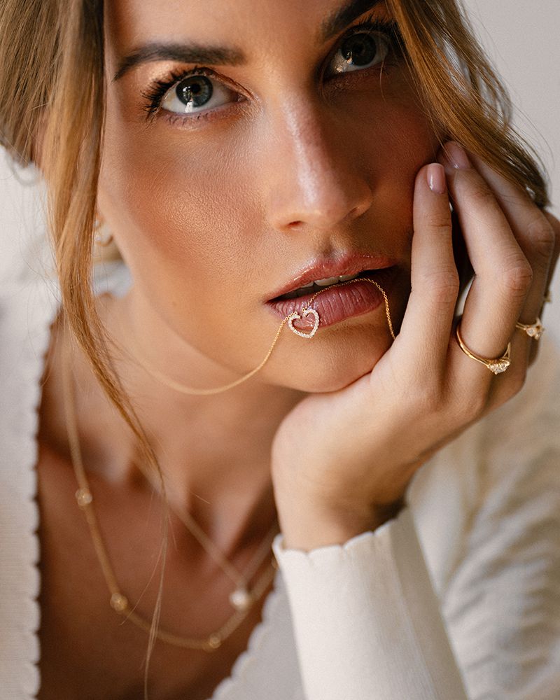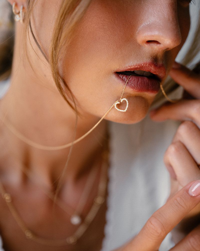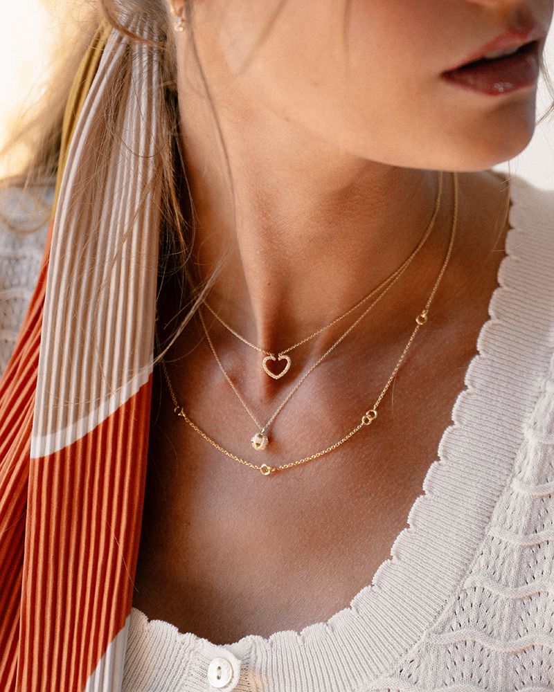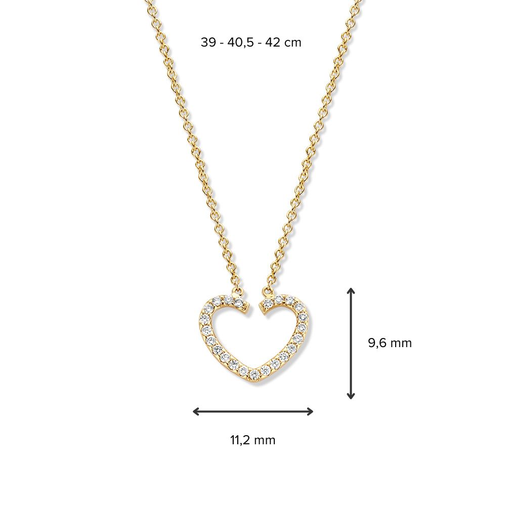 Geelgouden collier met hartjes hanger gezet met diamant.
