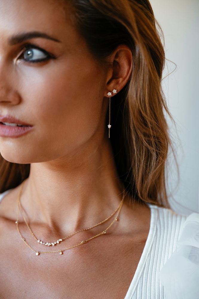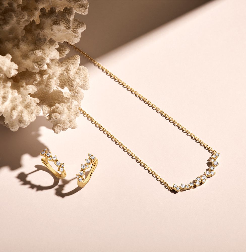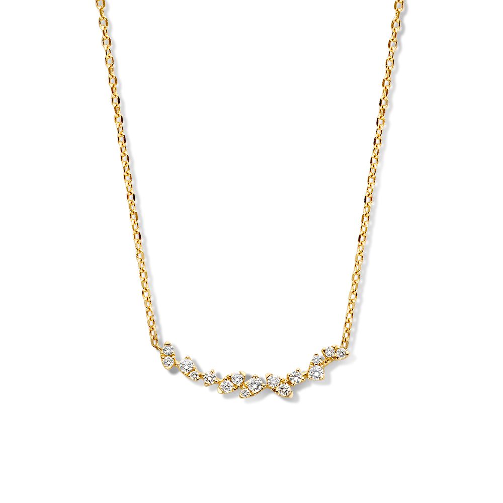 Geelgouden collier met diamanten tussenstuk. Het collier is in lengte verstelbaar.