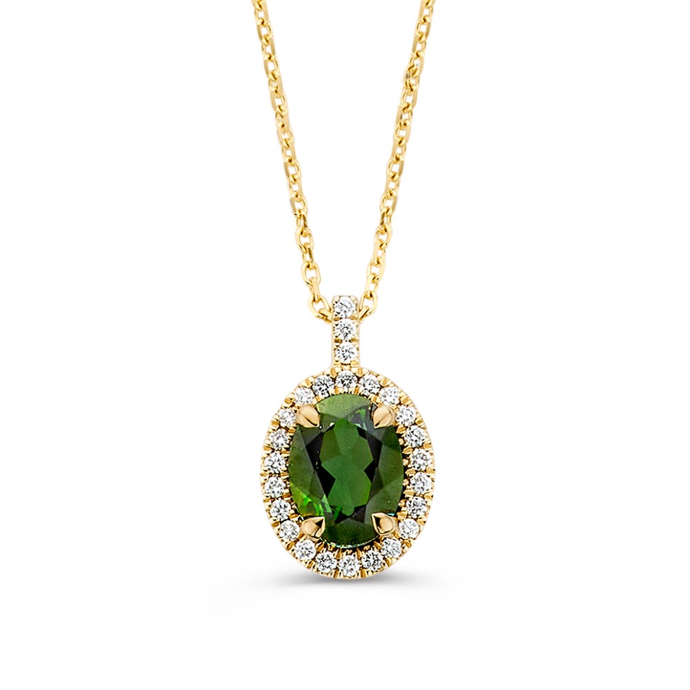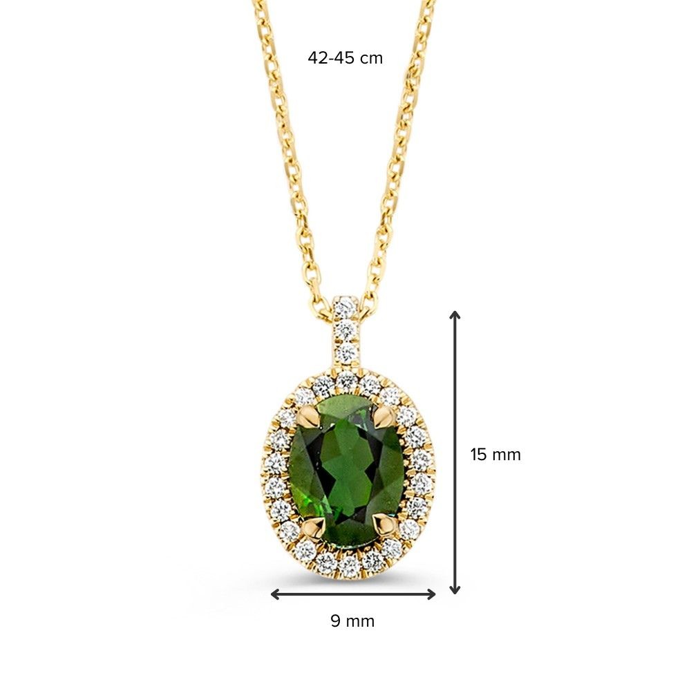 Collier geelgoud groene toermalijn + briljant