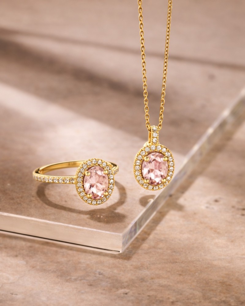Elegante, geelgouden hanger gezet met zachtroze morganiet als eyecatcher. Deze verfijnde edelsteen is gefacetteerd geslepen en dankzij de entourage zetting met fijne briljanten, schitteren de ketting je tegemoet. De hanger wordt geleverd met een bijpassend 14kt geelgouden collier met ankerschakel en karabijnsluiting. Deze collectie bestaat uit sieraden met verschillende edelstenen, je kiest zelf de kleur die het best bij jou past.