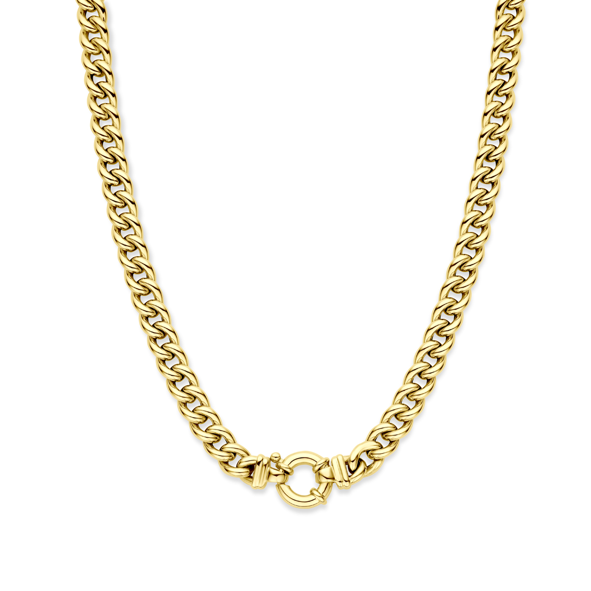 collier gourmette 9 mm 45 cm met groot veerslot 14K geelgoud