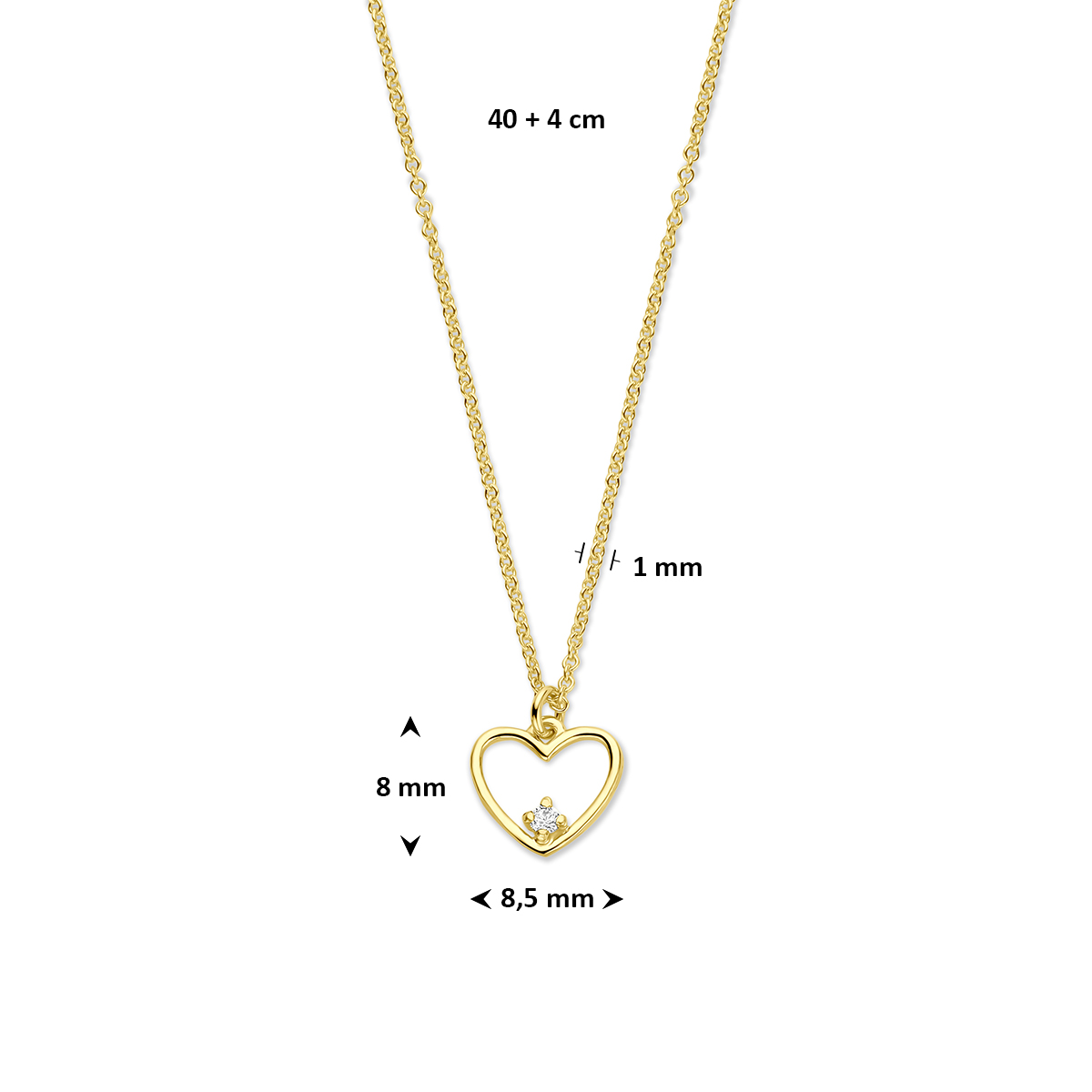 collier hartje diamant 0.02ct h si 40 + 4 cm 14K geelgoud